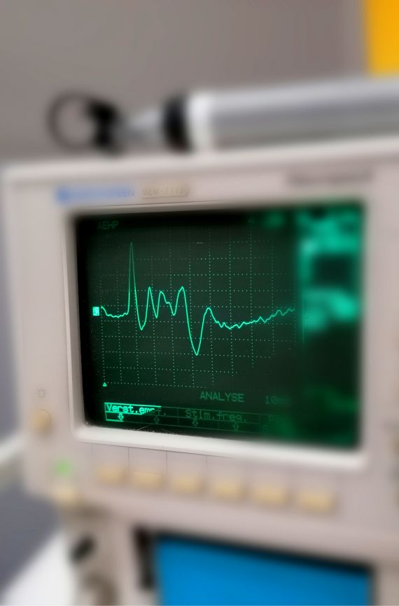 Mit Hilfe einer audiometrischen Untersuchung können wir prüfen, ob das Gehör des Tieres geschädigt ist. Die Ableitung akustisch evozierter Potentiale (AEP) wird in der Regel in Narkose durchgeführt.
